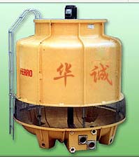 冷却水塔是利用水合空气的接触,通过蒸发作用来散去工业上或制冷空调中产生的废热的一种设备。基本原理是:干燥(低焓值)的空气经过风机的抽动后,自进风网处进入冷却塔内;饱合蒸汽分压力大的高温水分子向压力低的空气流动,湿热(高焓值)的水自播水系统洒入塔内。当水滴合空气接触时,一方面由于空气与不的直接传热,另一方面由于水蒸汽表面合空气之间存在压力差,在压力的作用下产生蒸发现象,带到目前为走蒸发潜热,将水中的热量带走即蒸发传热,从而达到降温之目的。冷却塔的工作过程:圆形逆流式冷却塔的工作过程为例:热水自主机房通过水泵以一定的压力经过管道、横喉、曲喉、中心喉将循环水压至冷却塔的播水系统内,通过播水管上的小孔将水均匀地播洒在填料上面干燥的低晗值的空气在风机的作用下由底部入风网进入塔内,热水流经填料表面时形成水膜合空气进行热交换,高湿度高晗值的热风从顶部抽出,冷却水滴入底盆内,经出水管流入主机。一般情况下,进入塔内的空气、是干燥低湿球温度的空气,水合空气之间明显存在着水分子的浓度差合动能压力差,当风机运行时,在塔内静压的作用下,水分子不断地向空气中蒸发,成为水蒸气分子,剩余的水分子的平均动能便会降低,从而使循环水的温度下降。从以上分析可以看出,蒸发降温与空气的温度(通常说的干球温度)低于或高于水温无关,只要水分子能不断地向空气中蒸发,水温就会降低。但是,水向空气中的蒸发不会无休止地进行下去。当与水接触的空气不饱合时,水分子不断地向空气中蒸发,但当水气接触面上的空气达到饱合时,水分子就蒸发不出去,而是处于一种动平衡状态。蒸发出去的水分子数量等于从空气中返回到水中的水分子的数量,水温保持不变。由此可以看出,与水接触的空气越干燥,蒸发就越容易进行,水温就容易降低。